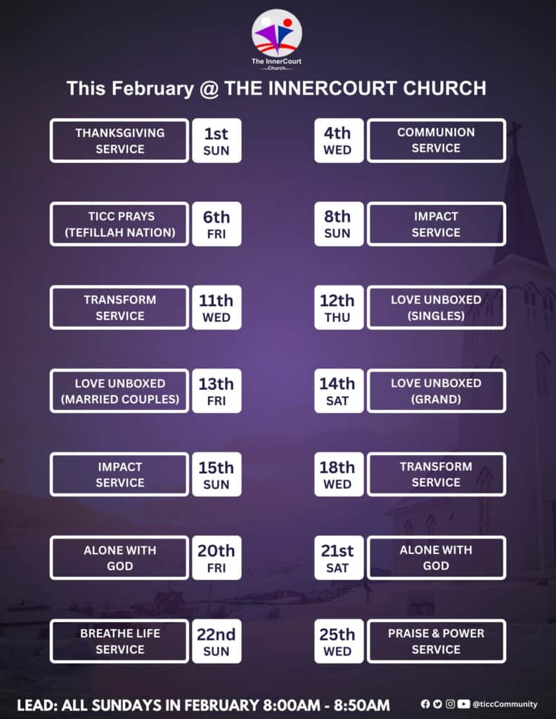 - Impact Service: 09:00am – 11:00am (3rd Sunday: Breathe Life Service)